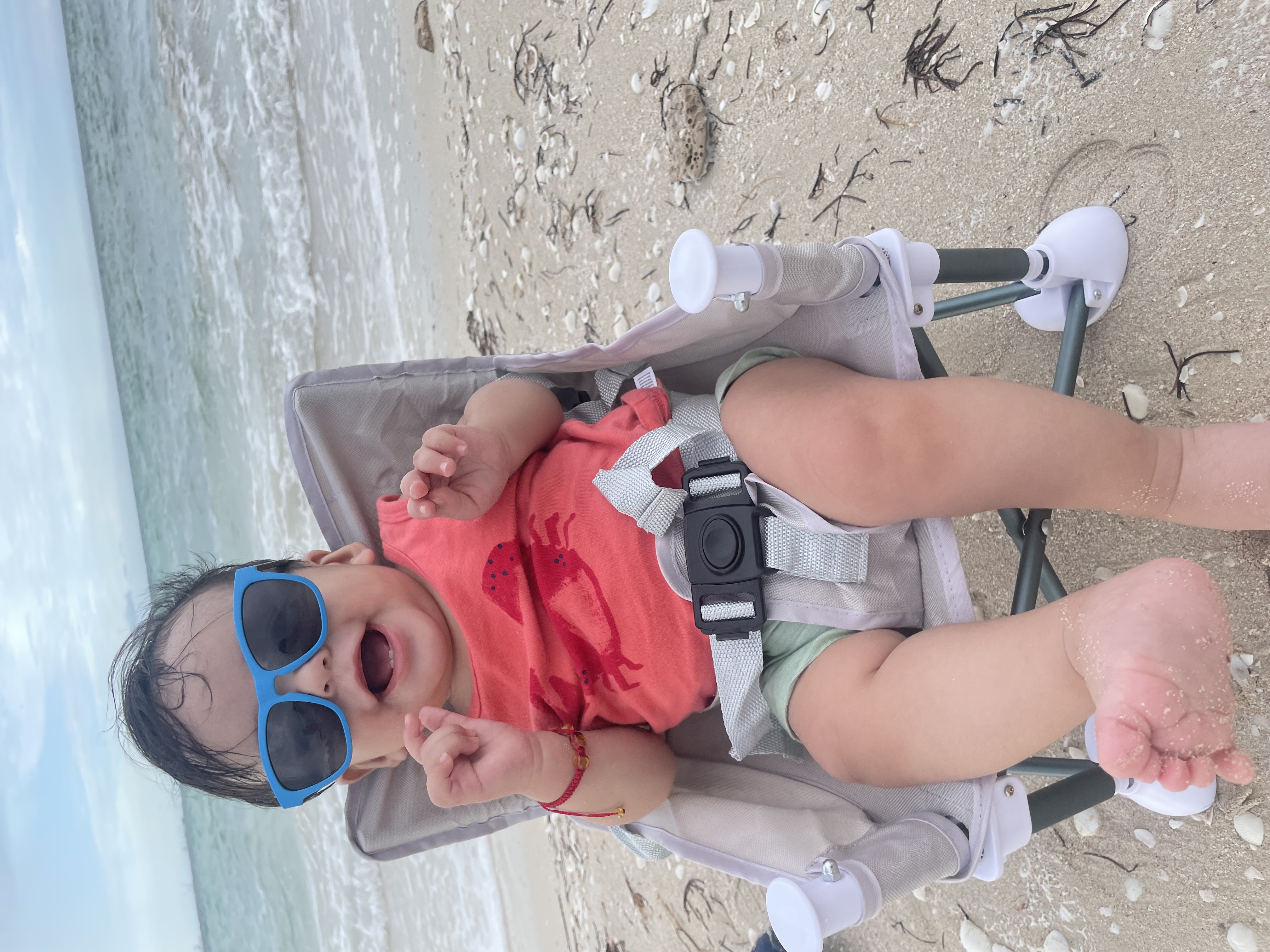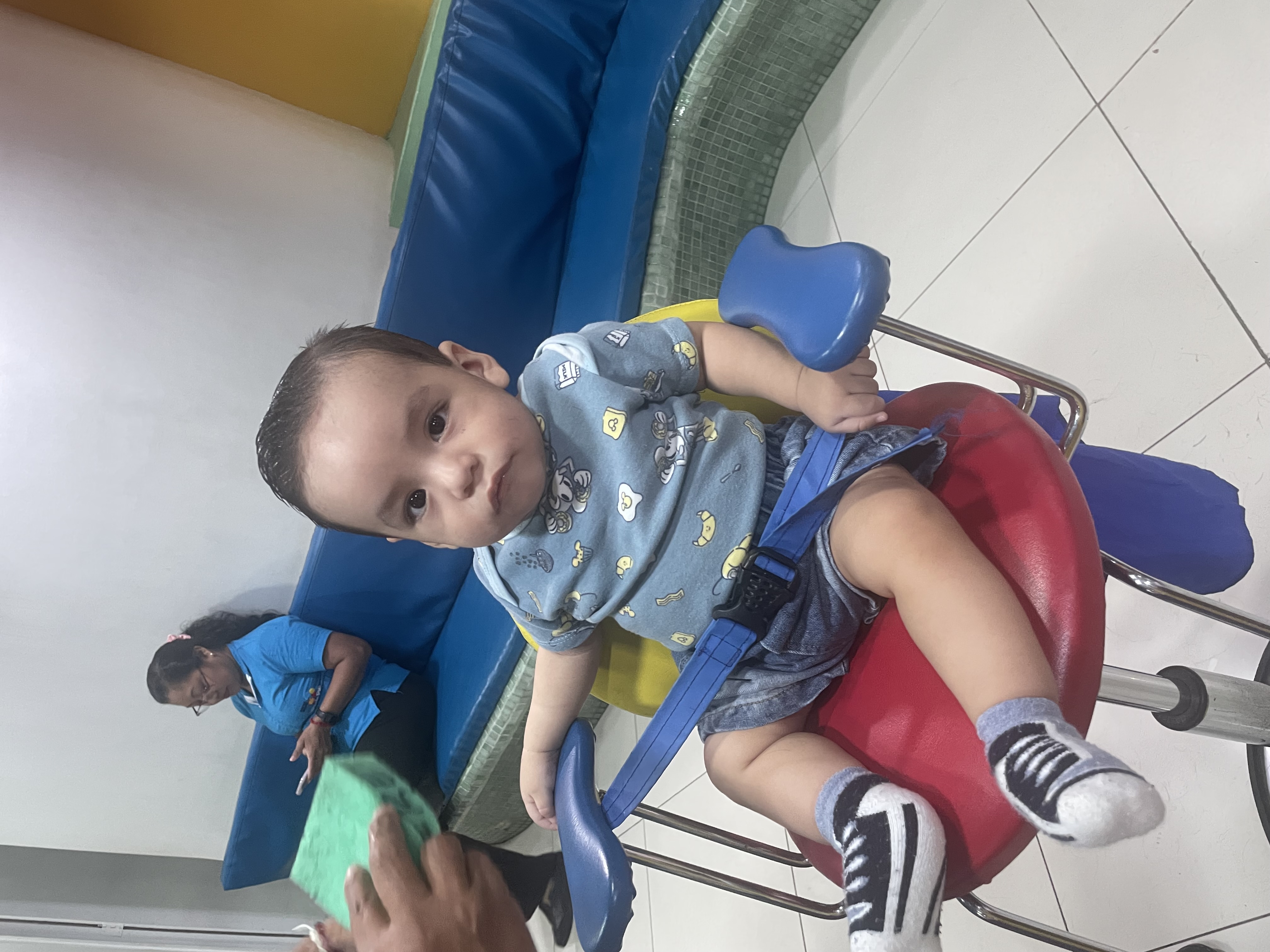 Está de pie con apoyo, amplía su vocabulario de balbuceo y reconoce su propio nombre claramente.